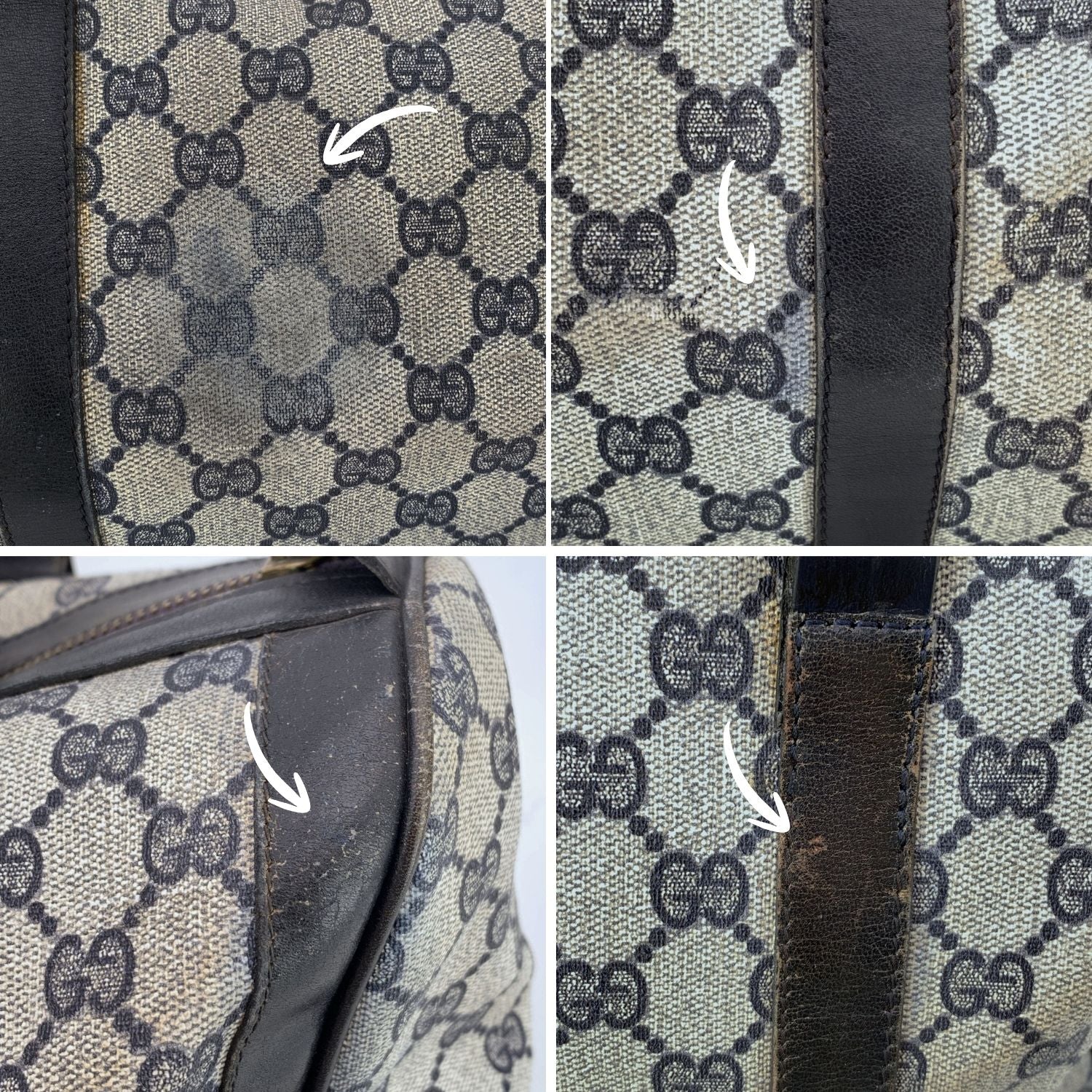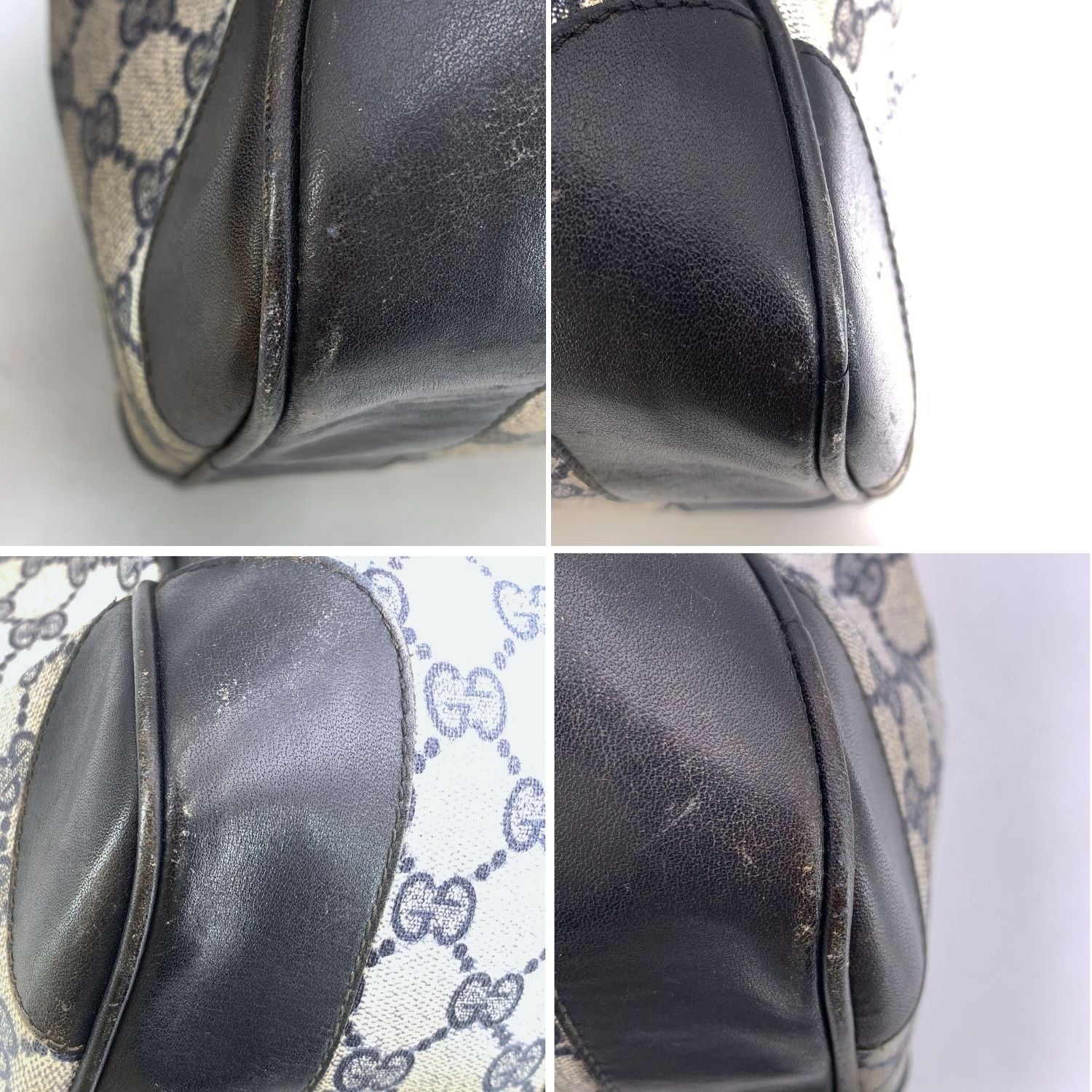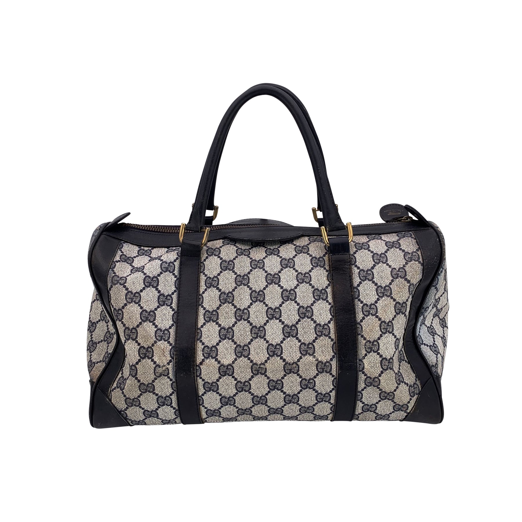 Gucci Vintage Blue Monogram Canvas Leather Duffle Boston Bag