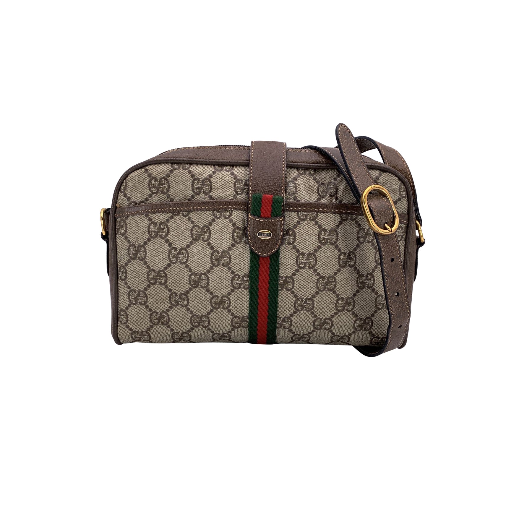 Gucci Vintage Brown Monogram Ophidia Web Zip Crossbody Bag