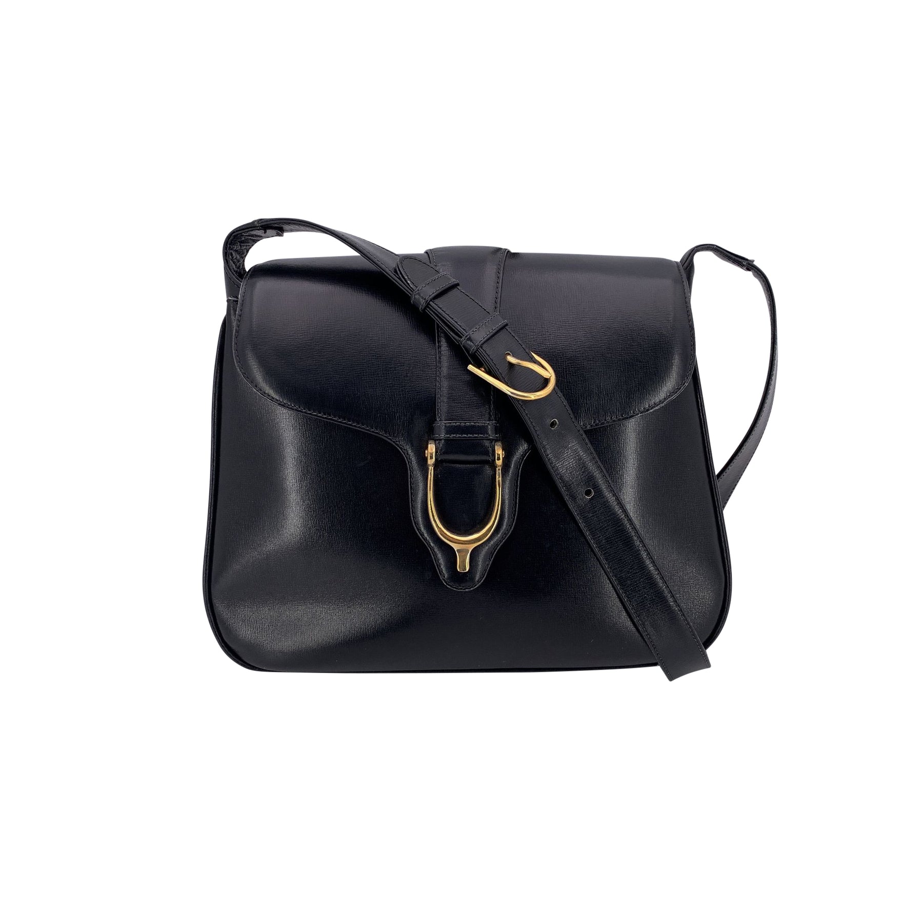 Gucci Vintage Black Leather Spur Box Shoulder Bag Handbag