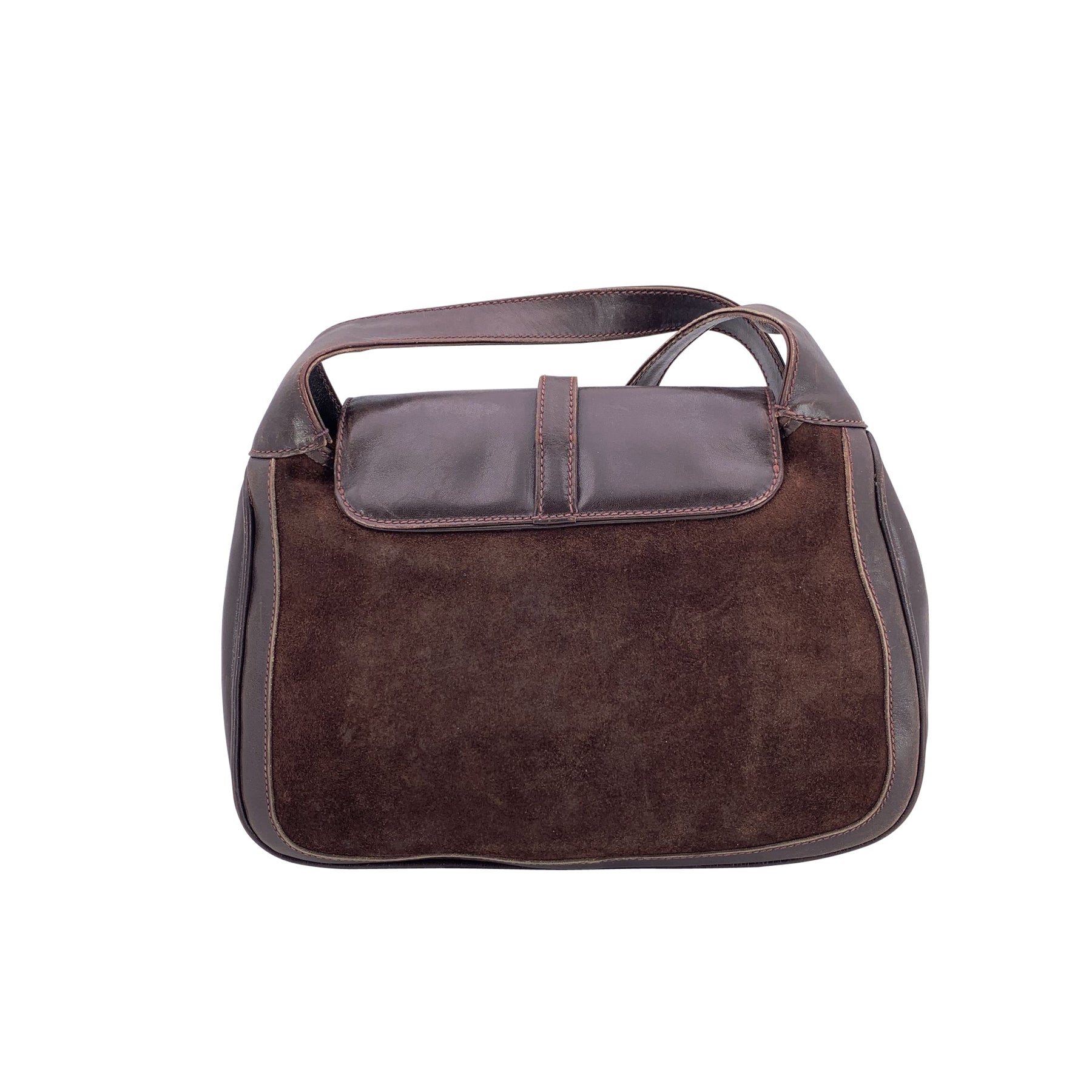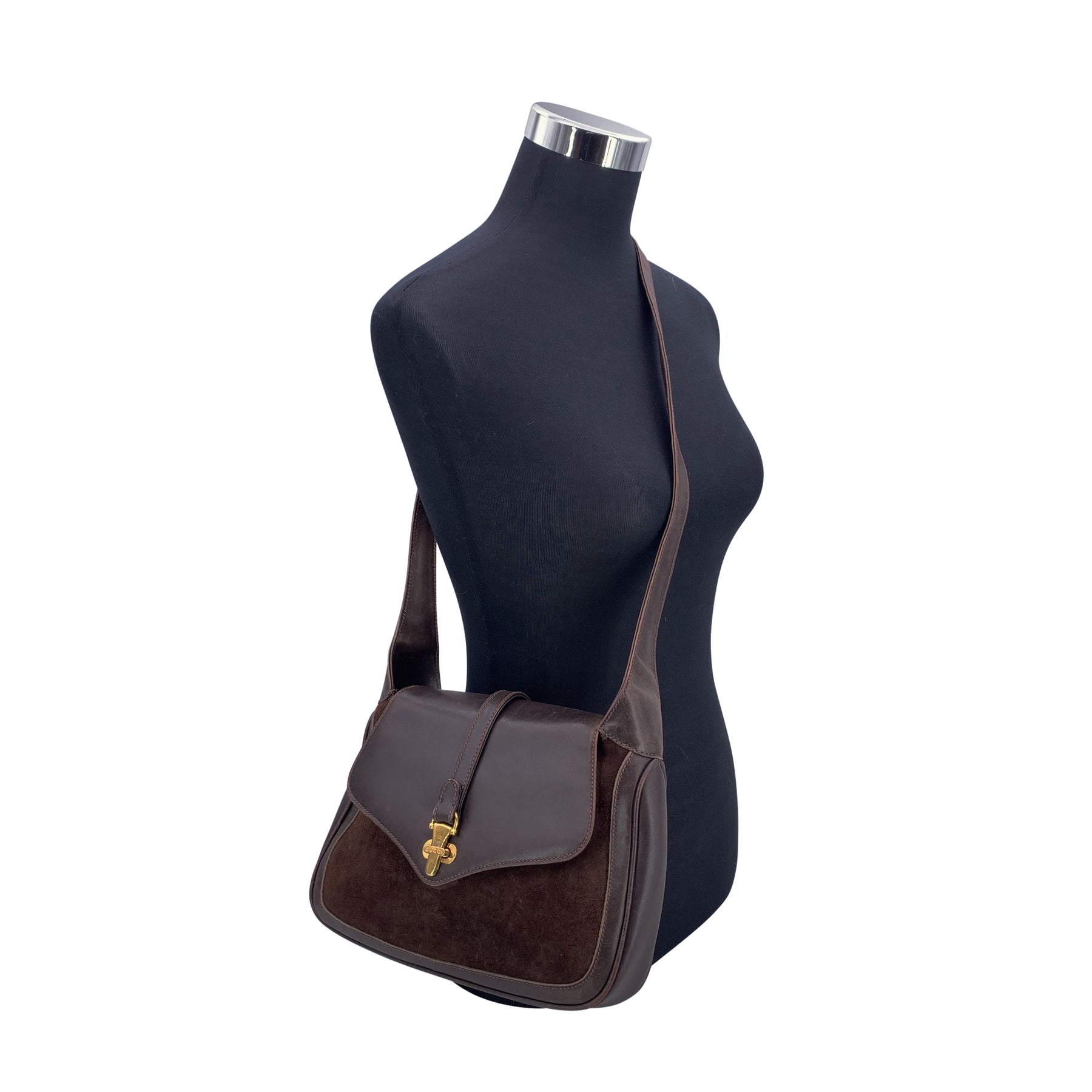 Gucci Vintage Brown Suede and Leather Gold Buckle Shoulder Bag