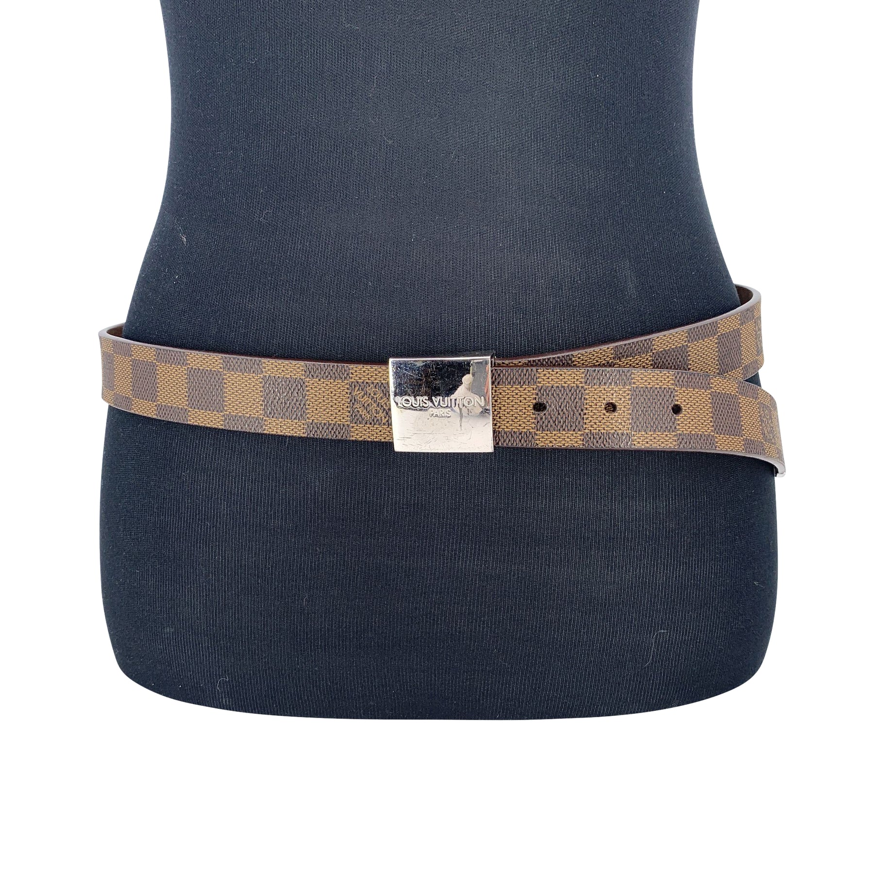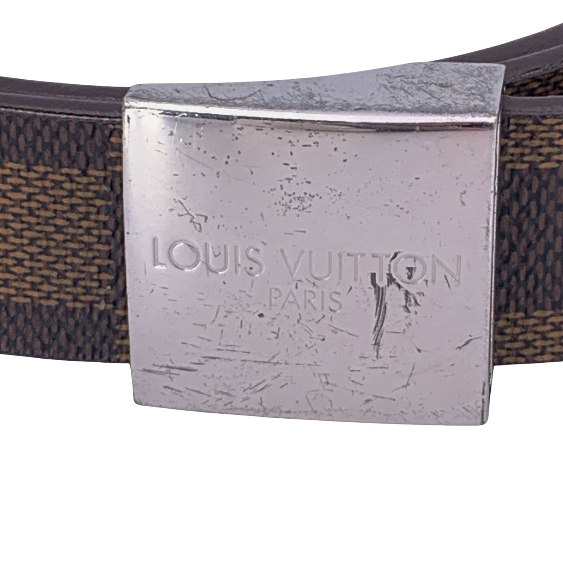 Louis Vuitton Vintage Damier Ebene Canvas Silver Metal Buckle Belt 90/36