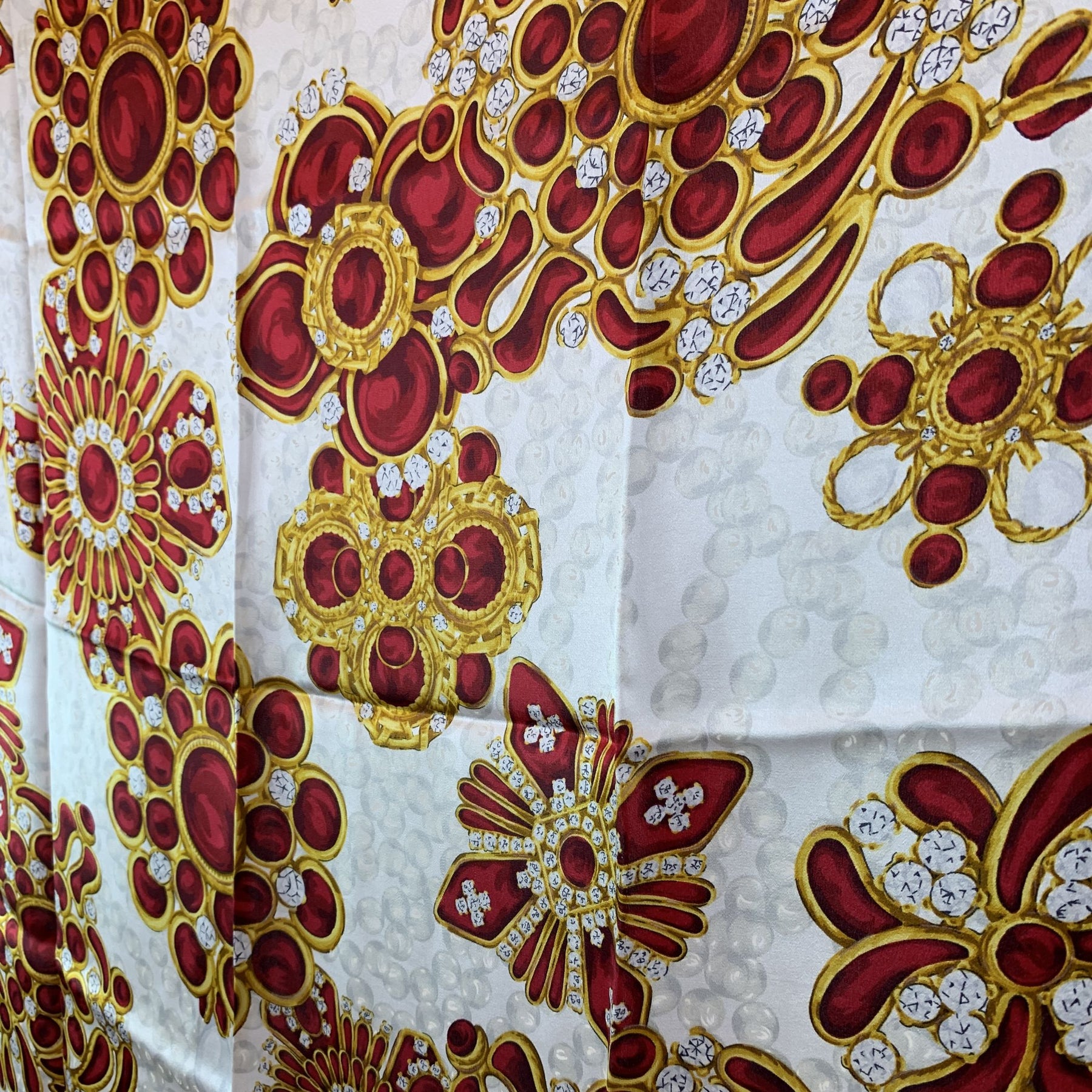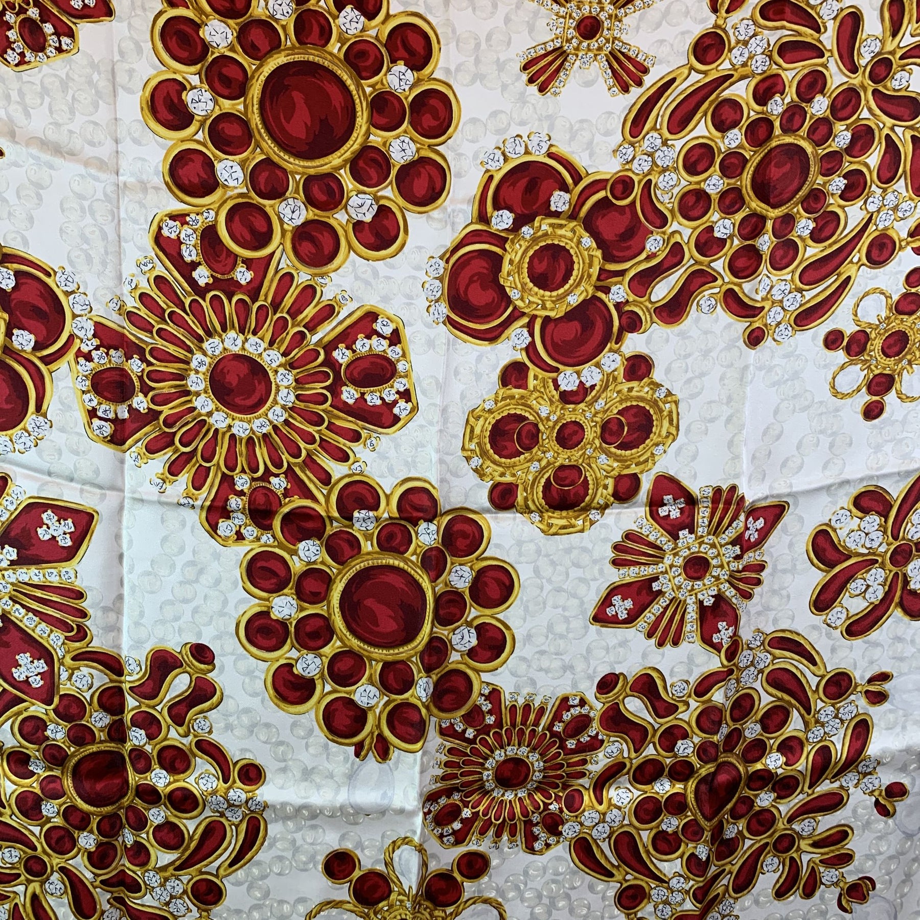 Chanel Vintage Beige Silk Scarf Gripoix Bijoux Jewels Print