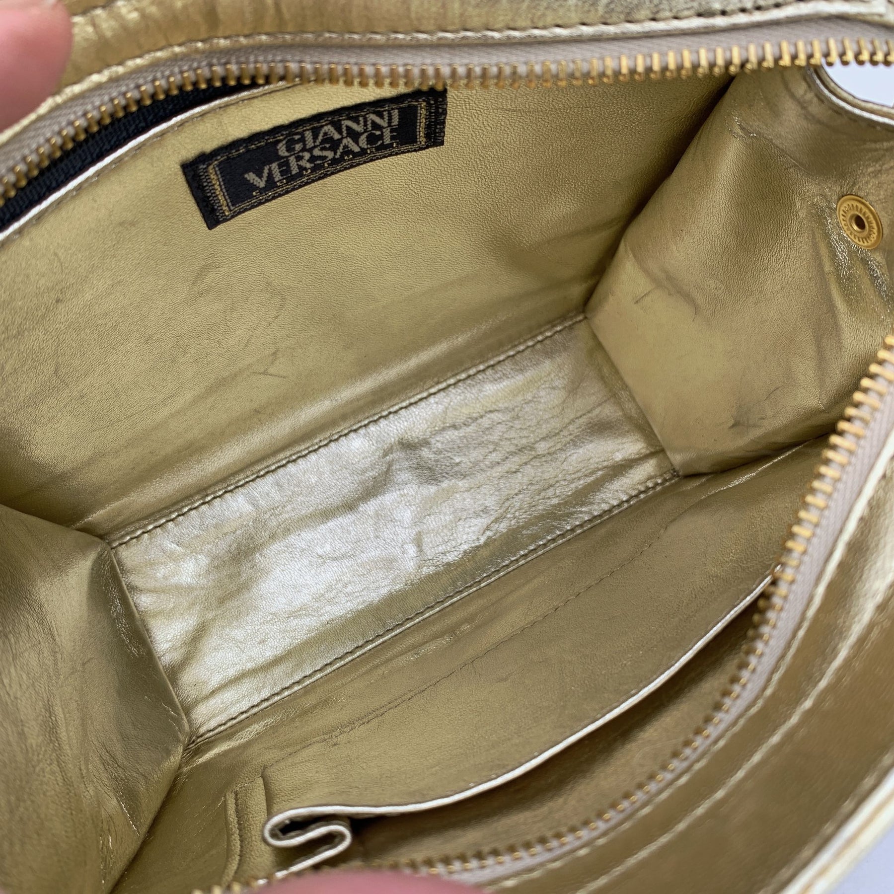 Gianni Versace Vintage Gold Leather Long Double Straps Shoulder Bag