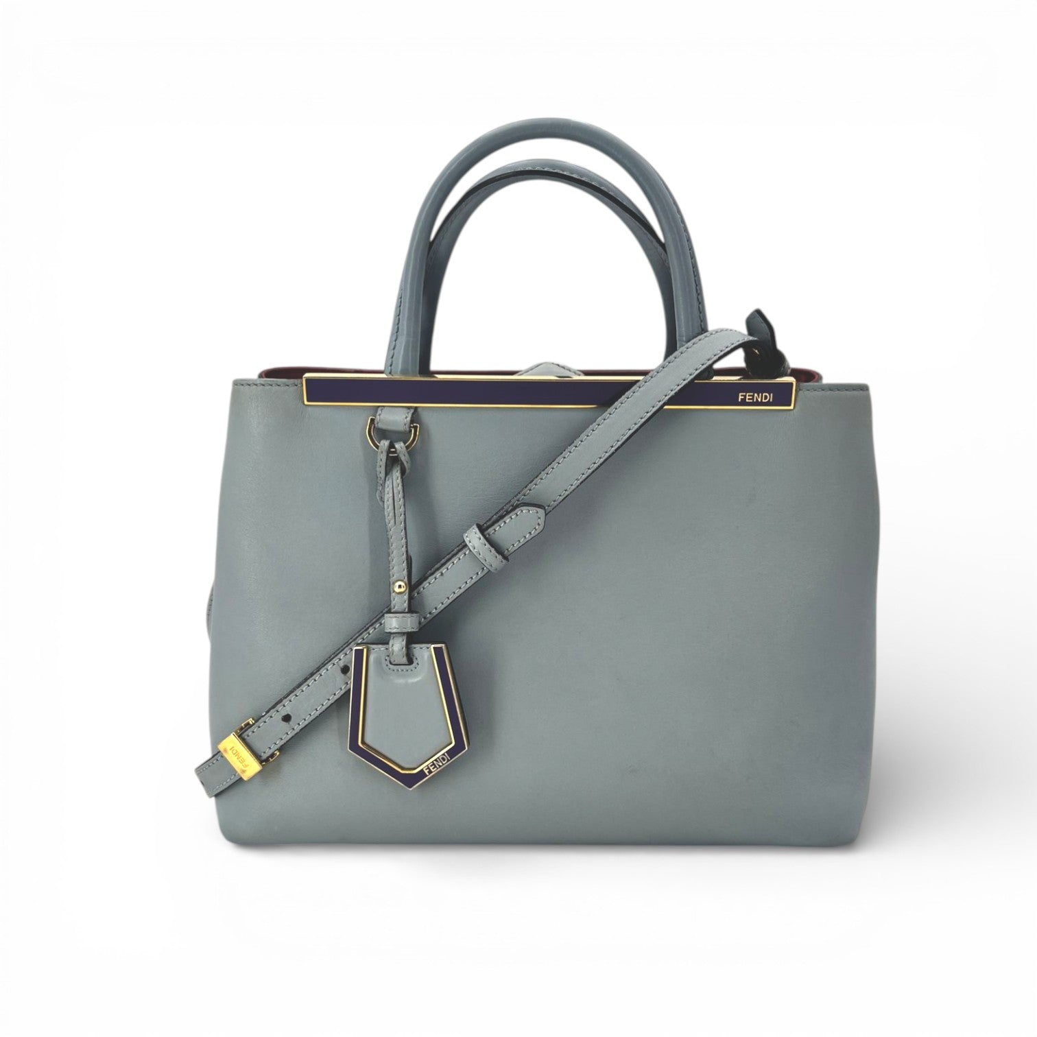 Fendi Light Blue Leather Petite 2 Jours Tote Bag with Shoulder Strap