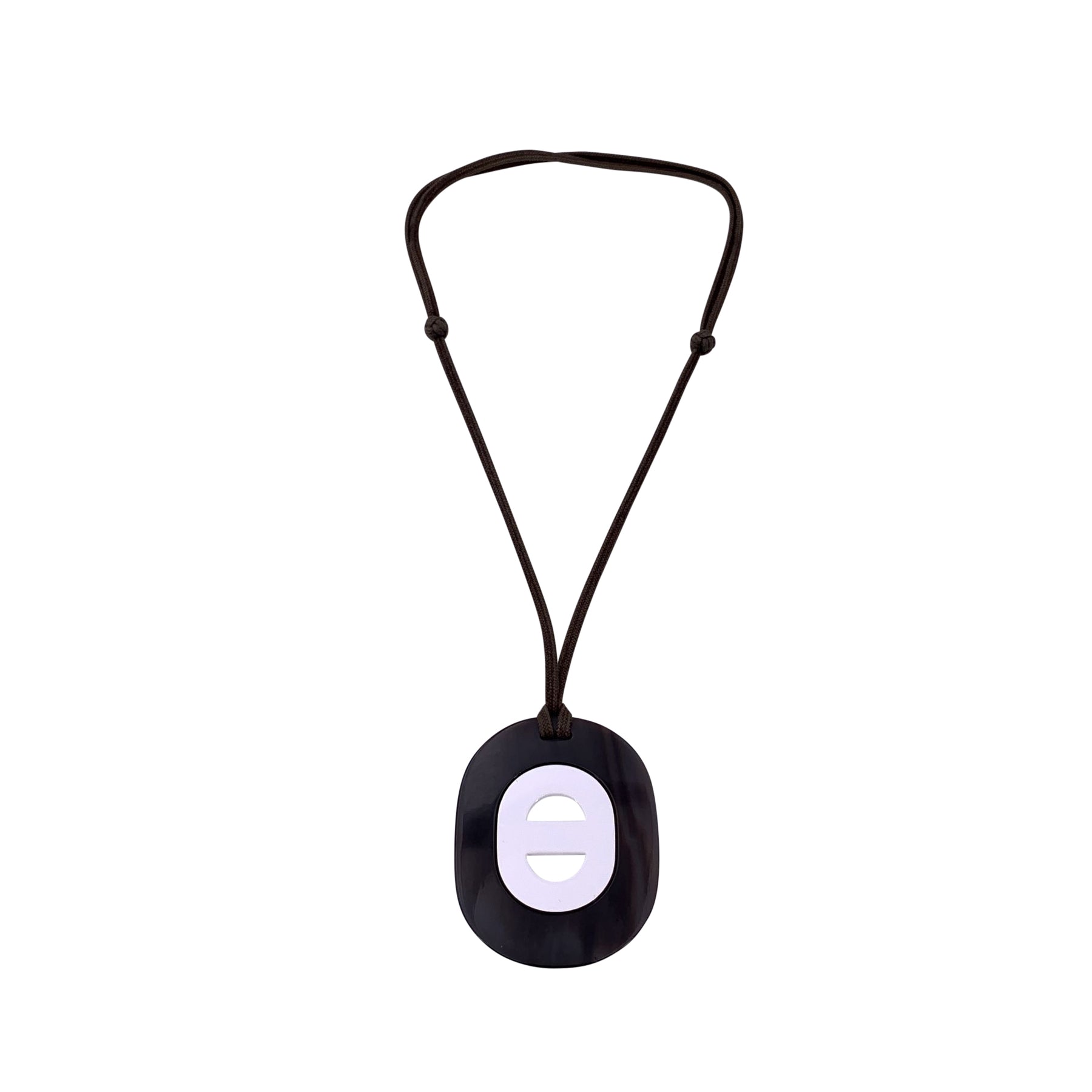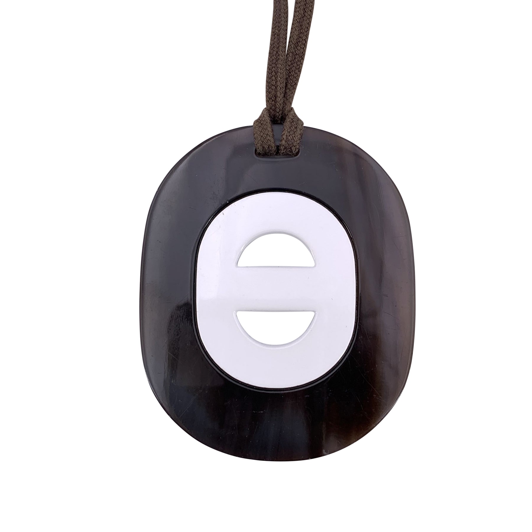 Hermes Paris Brown White Lacquered Wood Fidelio Necklace Oval Pendant